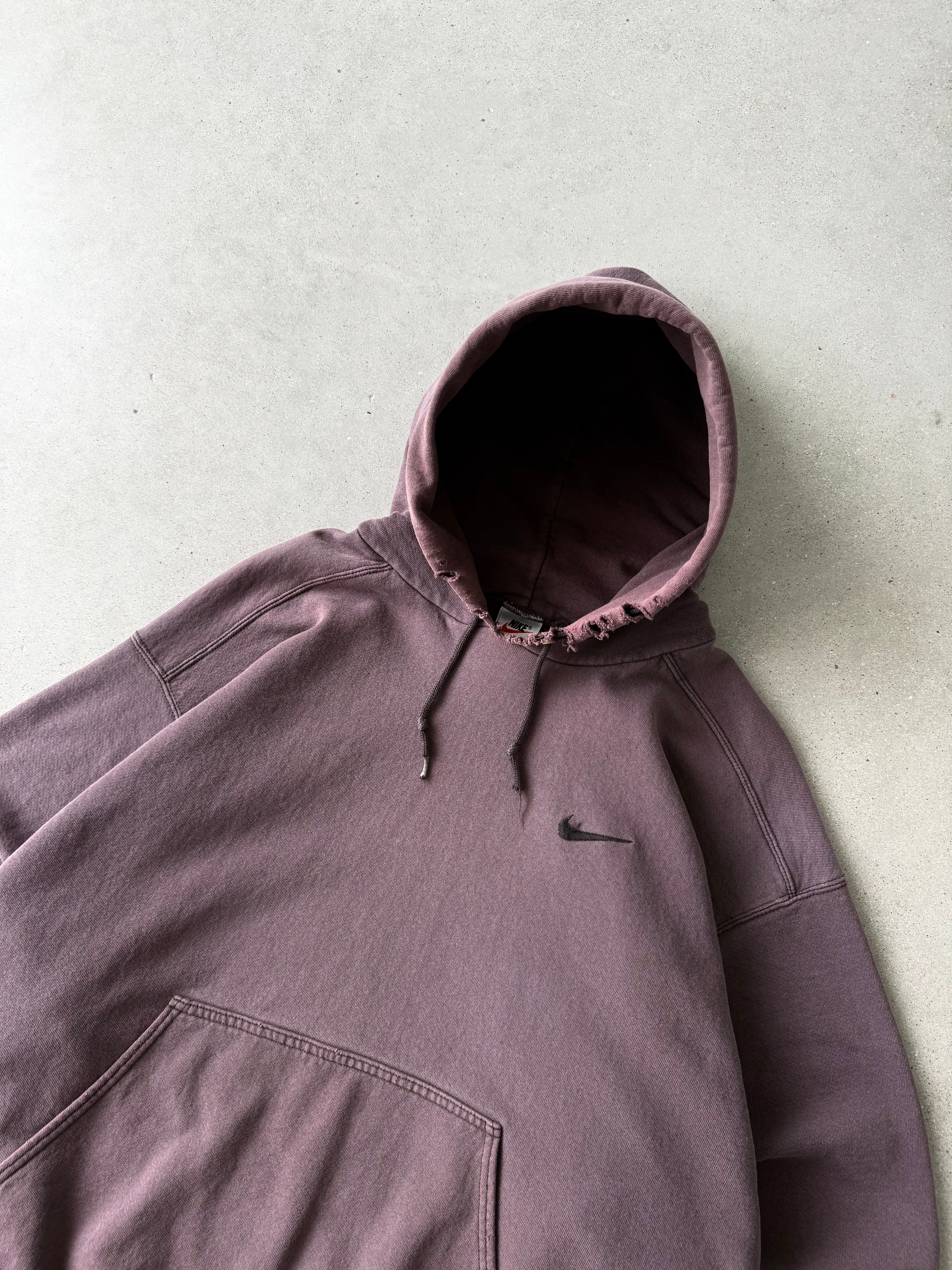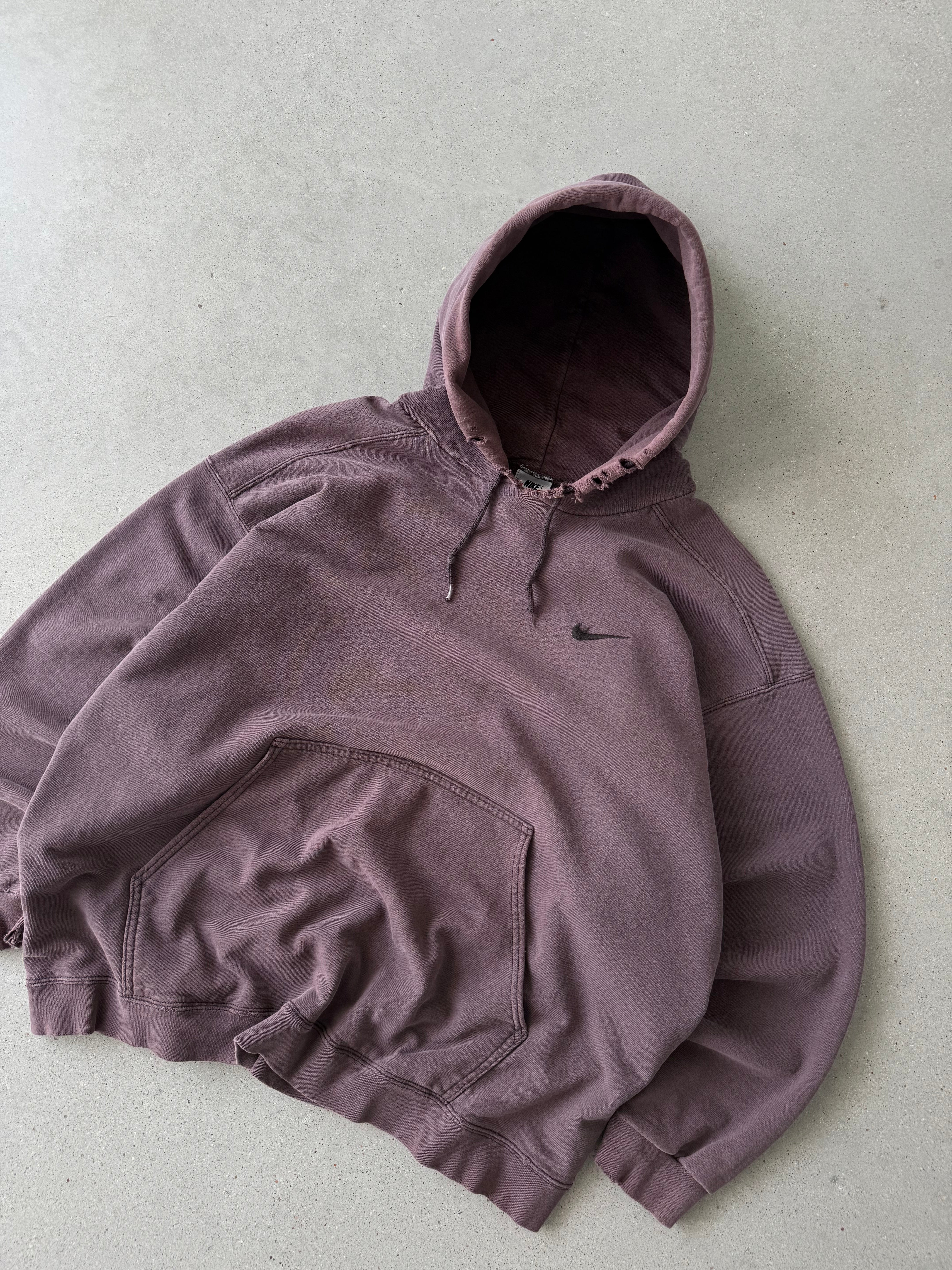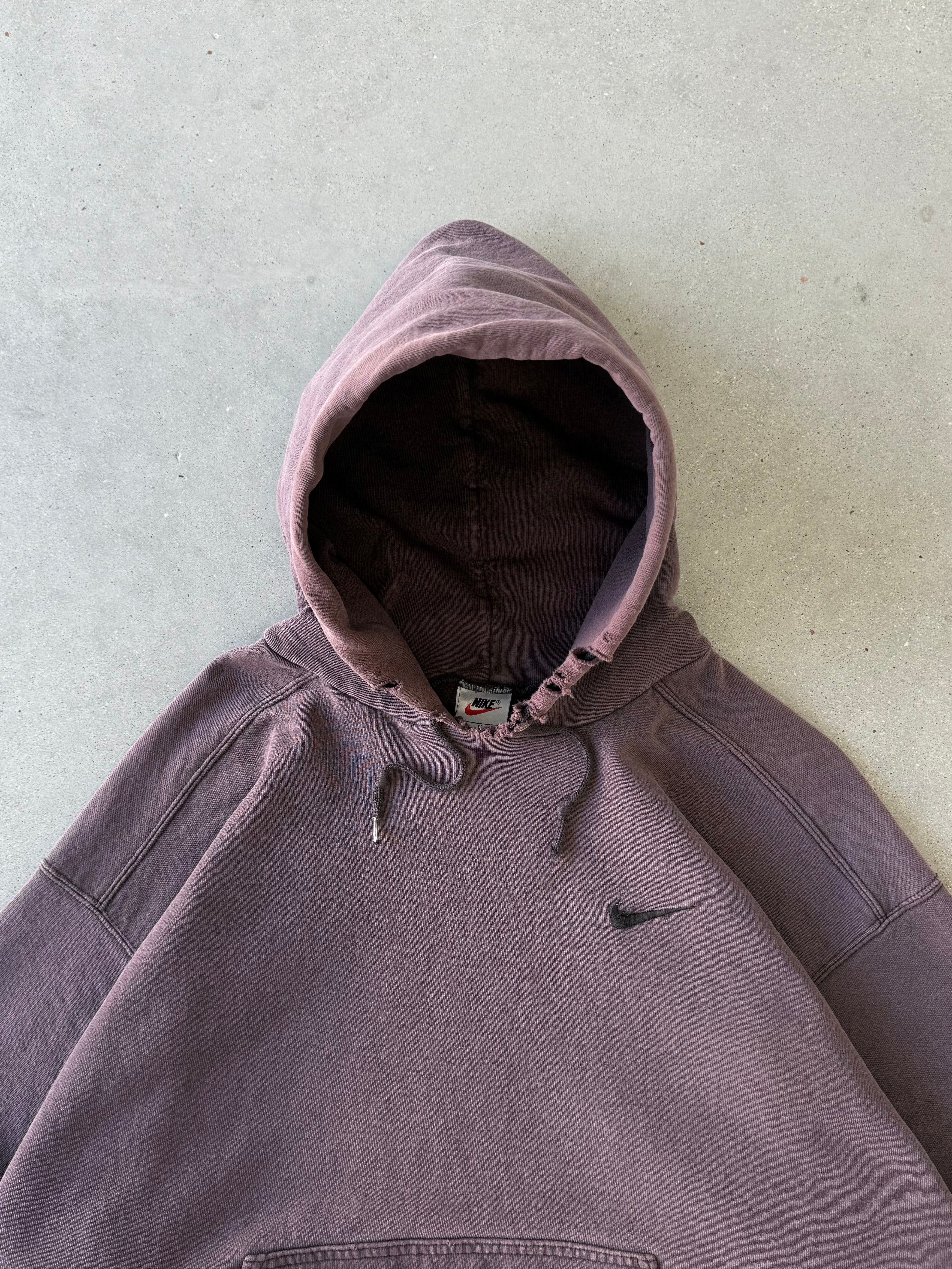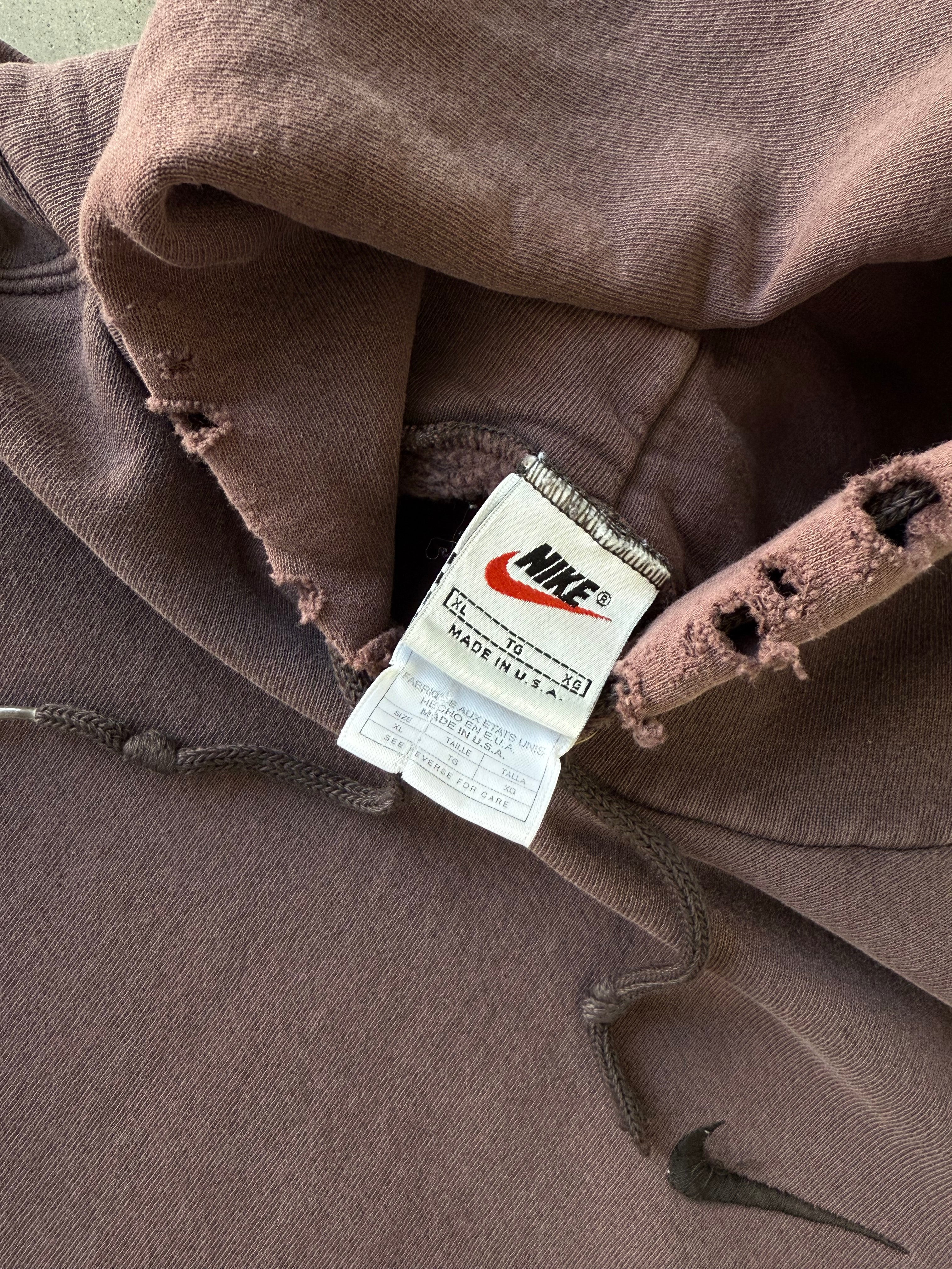 Vintage 1990s Nike Chocolate Brown Mini Swoosh Hoodie - XL
