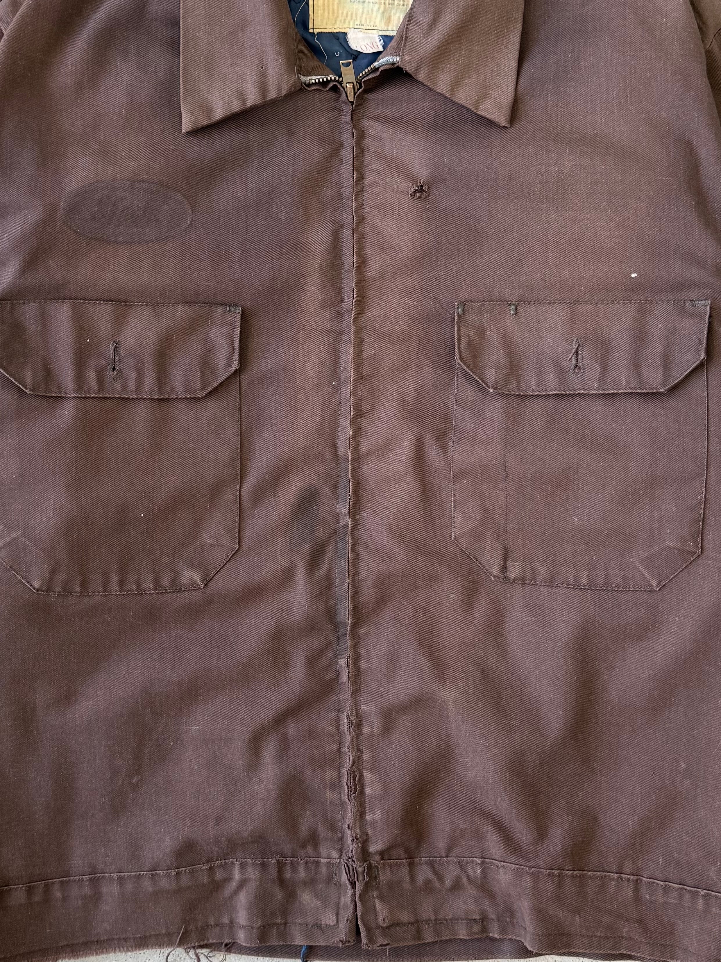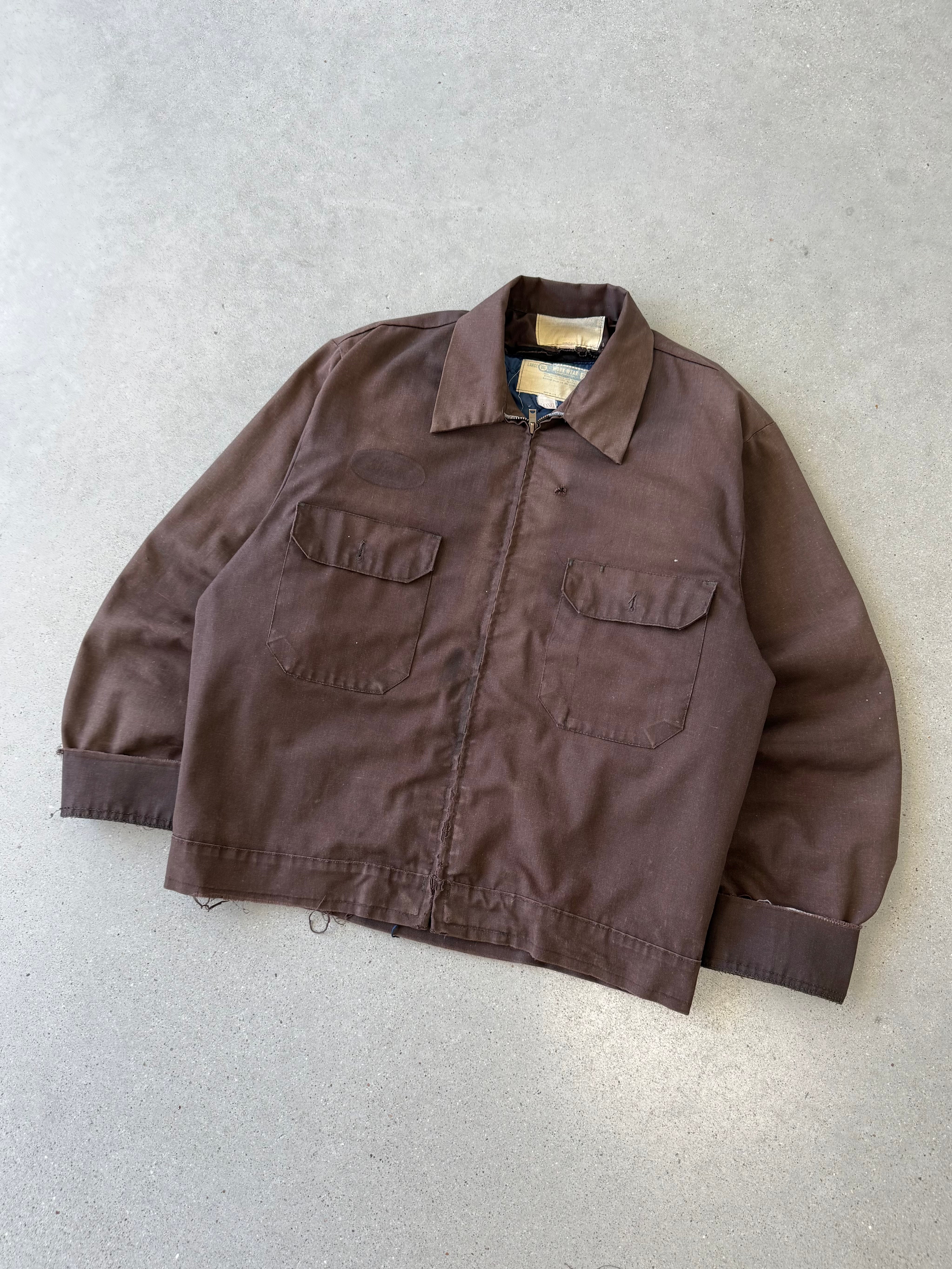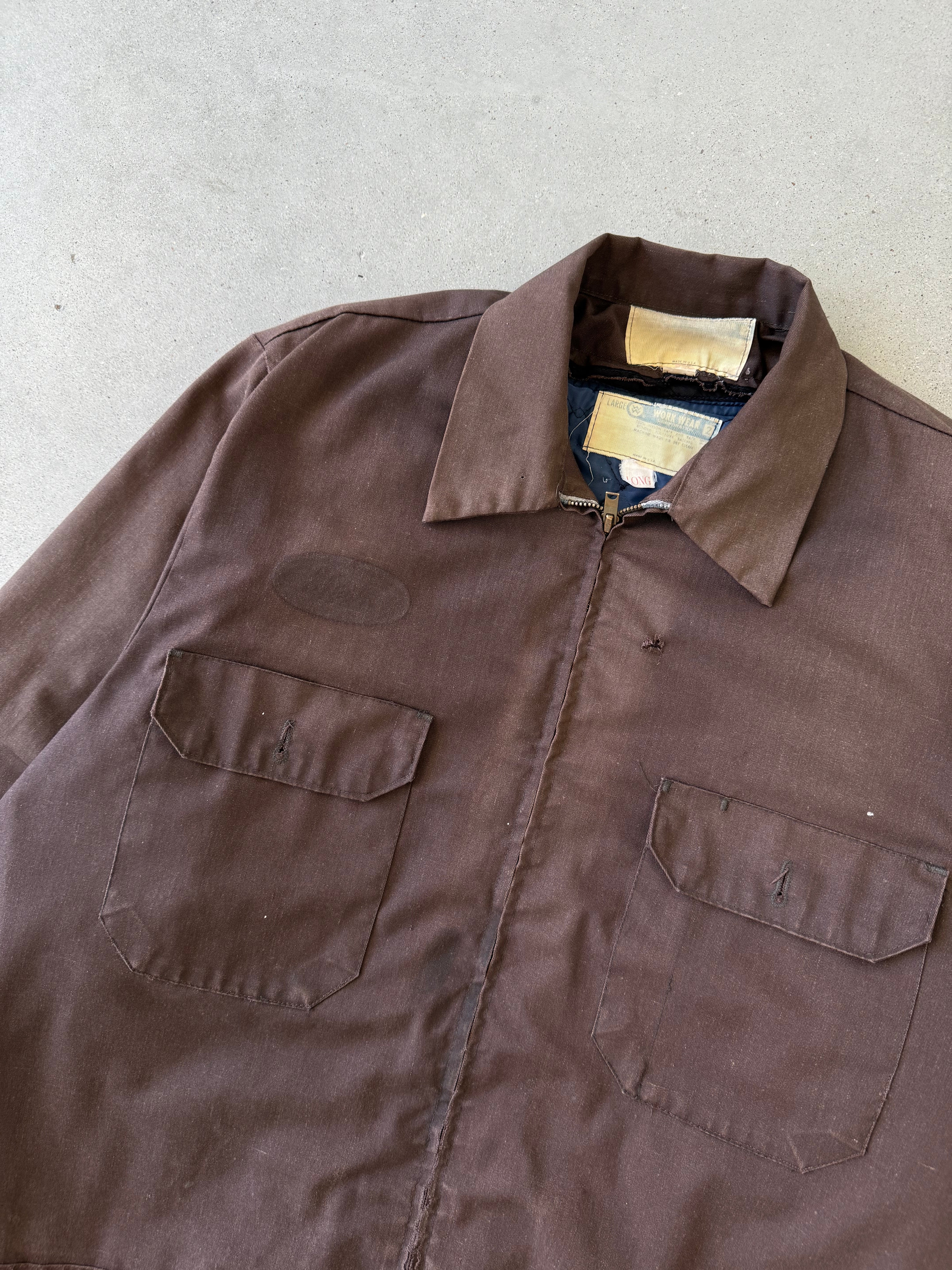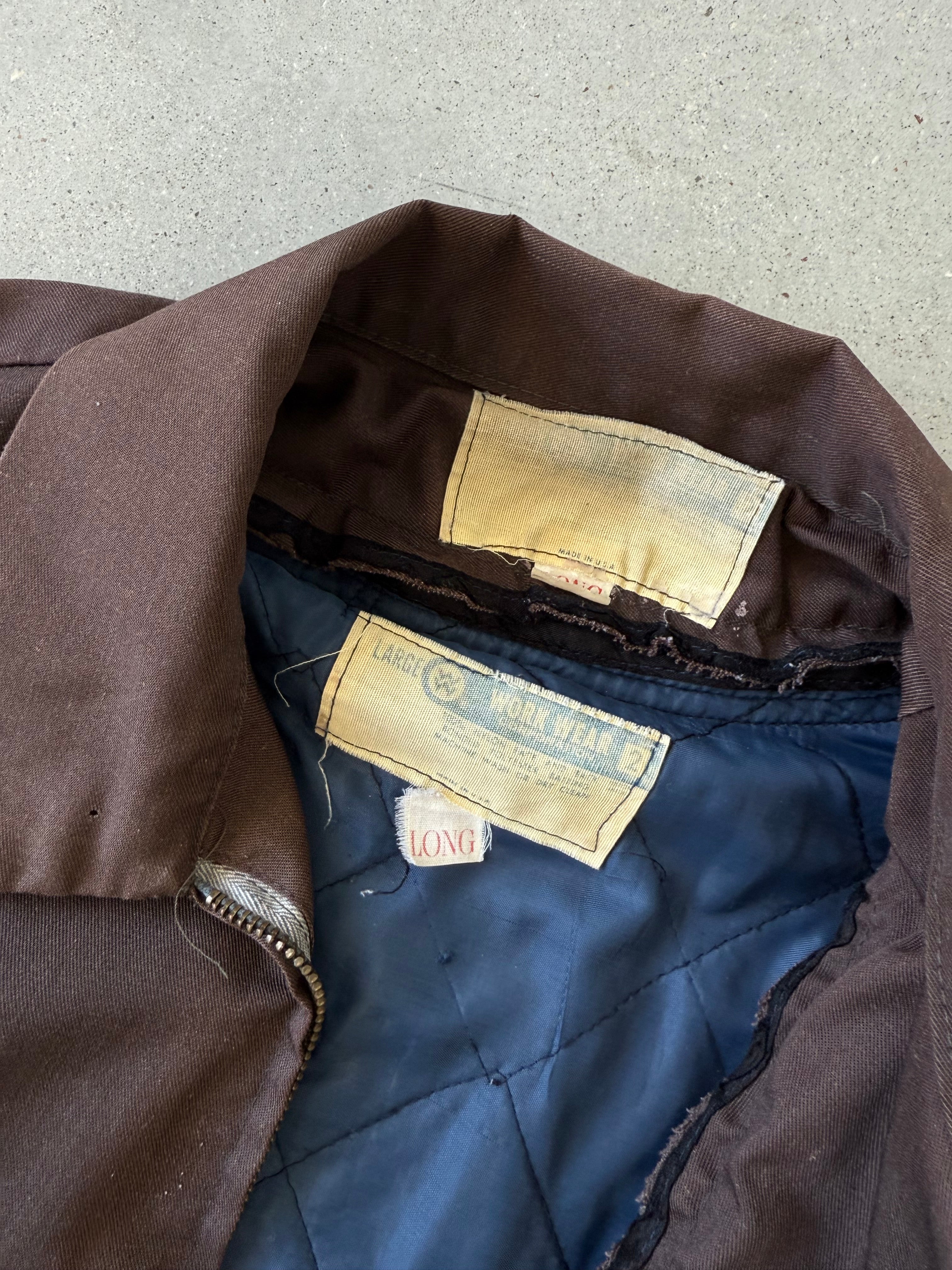 Vintage 70s Brown Distressed Blanket-lined Mechanic Jacket - L
