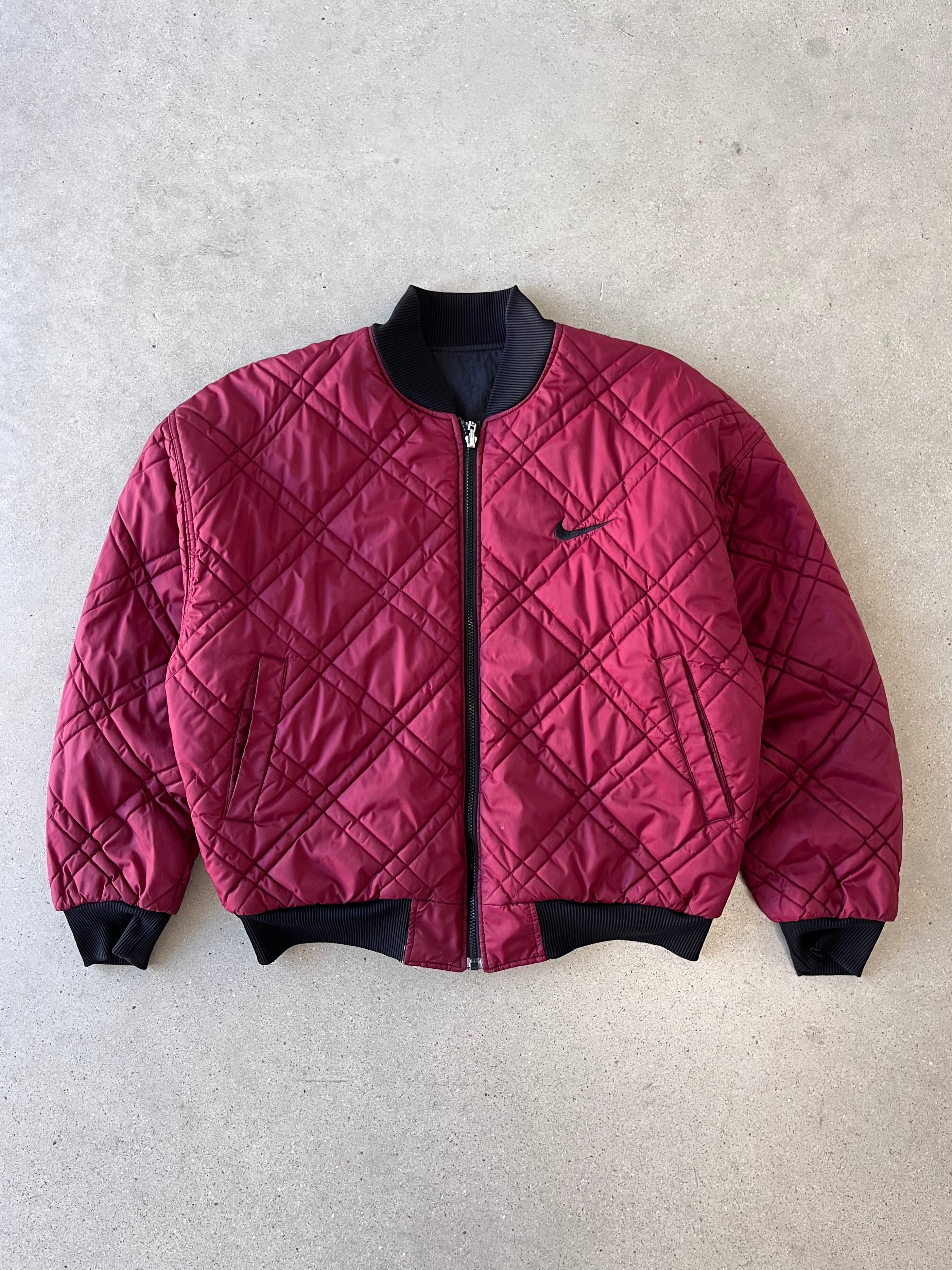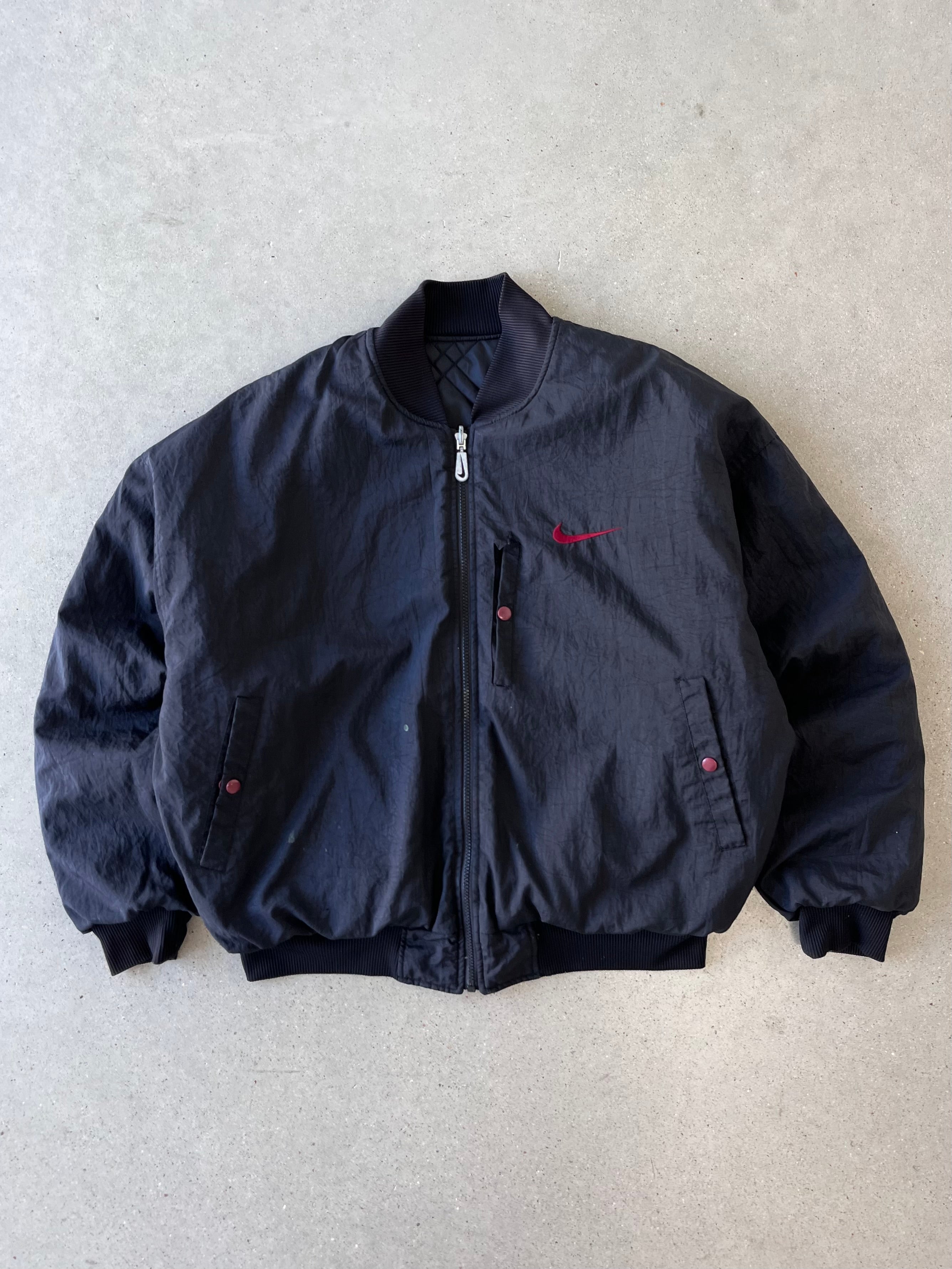 Vintage 90s Nike Big Swoosh Reversible Bomber Jacket - M