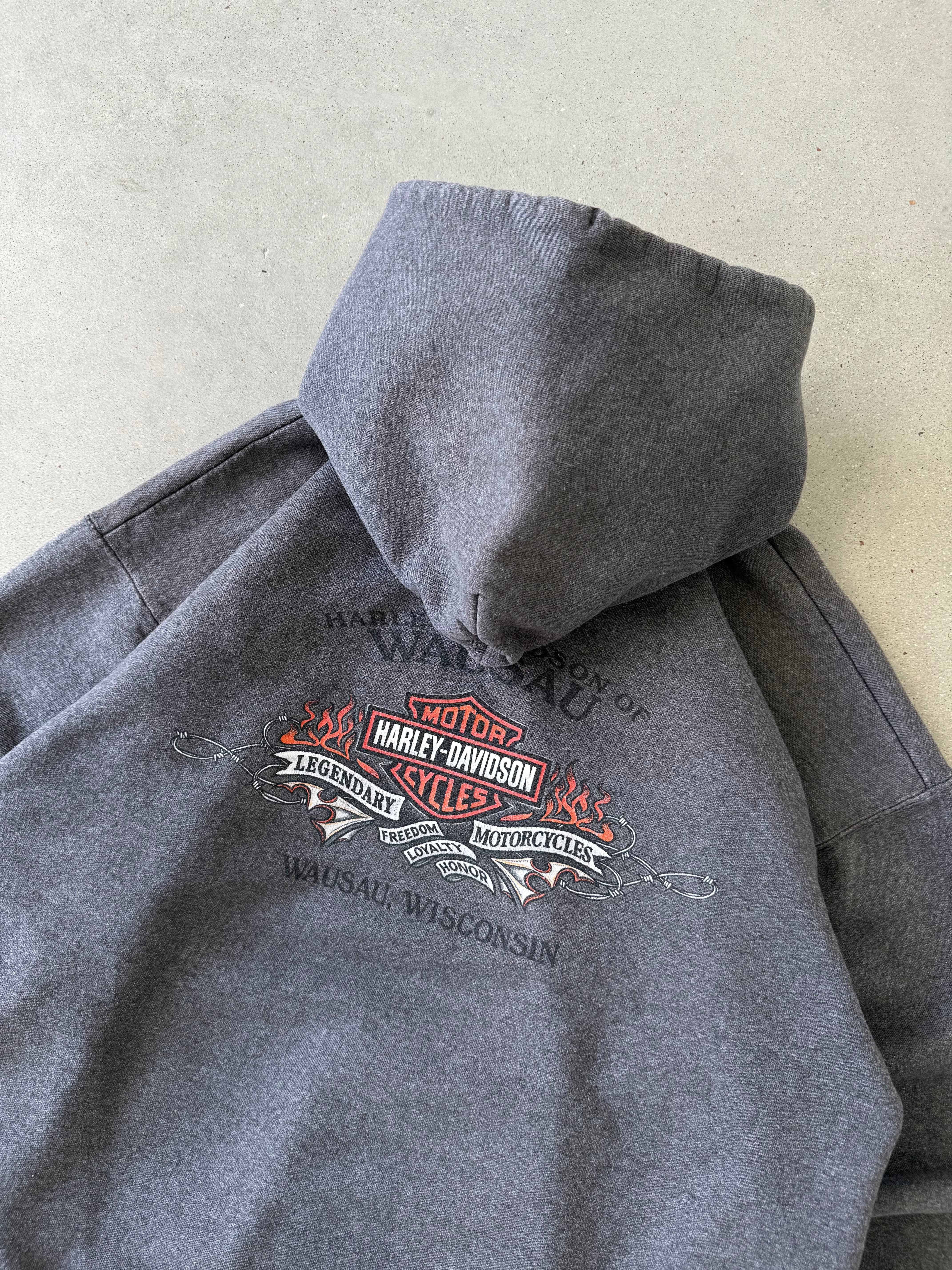 Vintage Harley Davidson Wausau Gray Hoodie- L