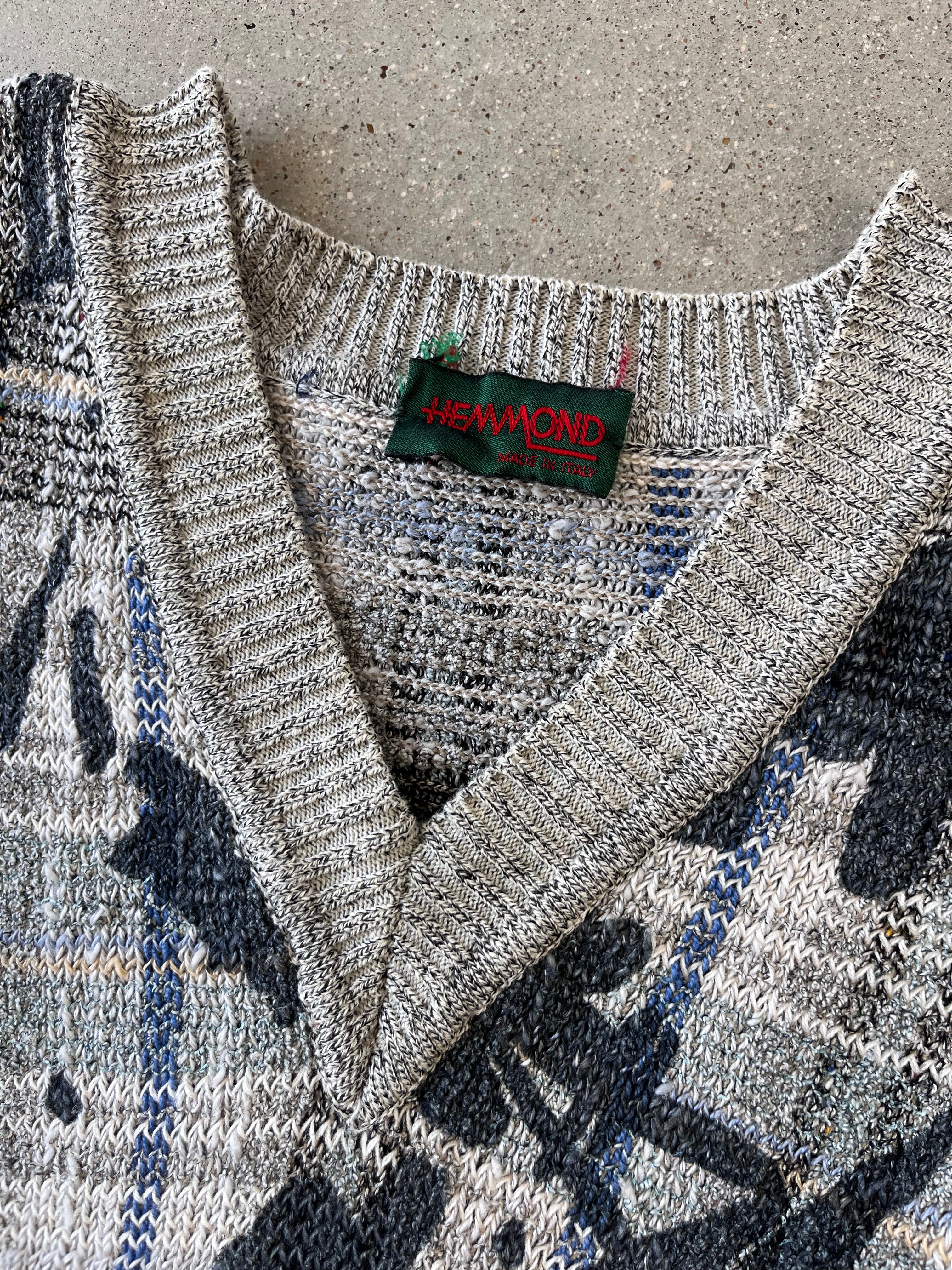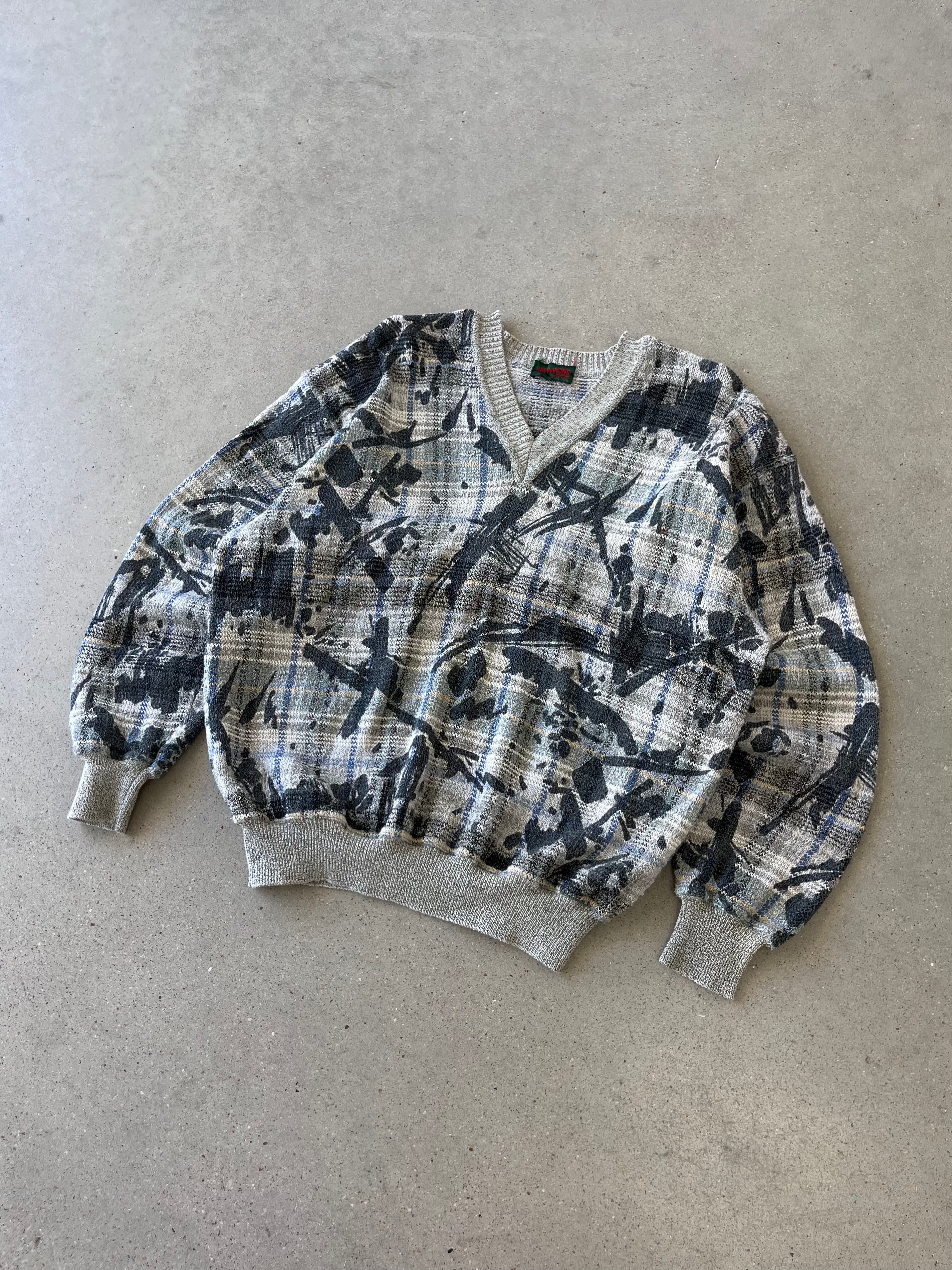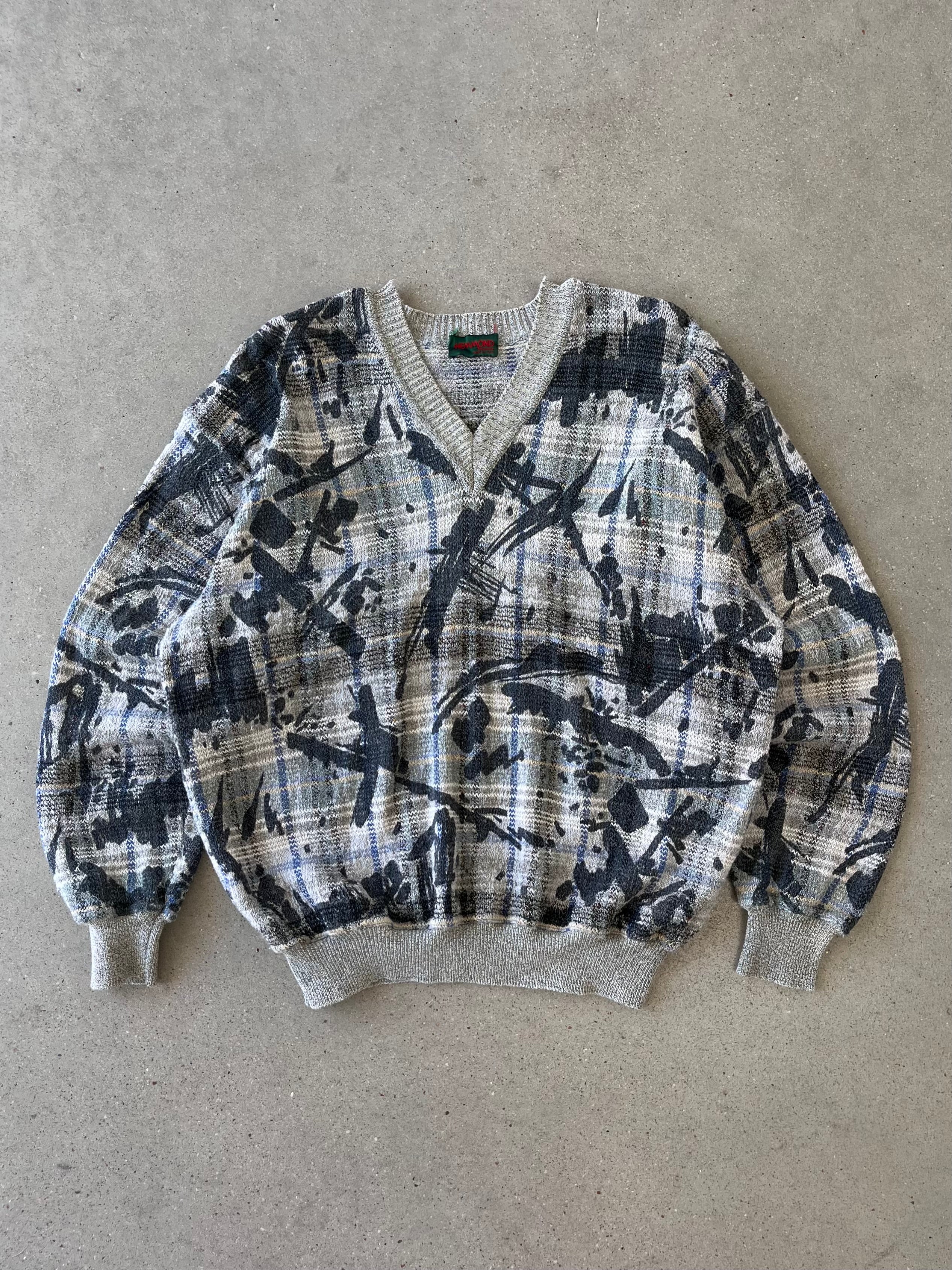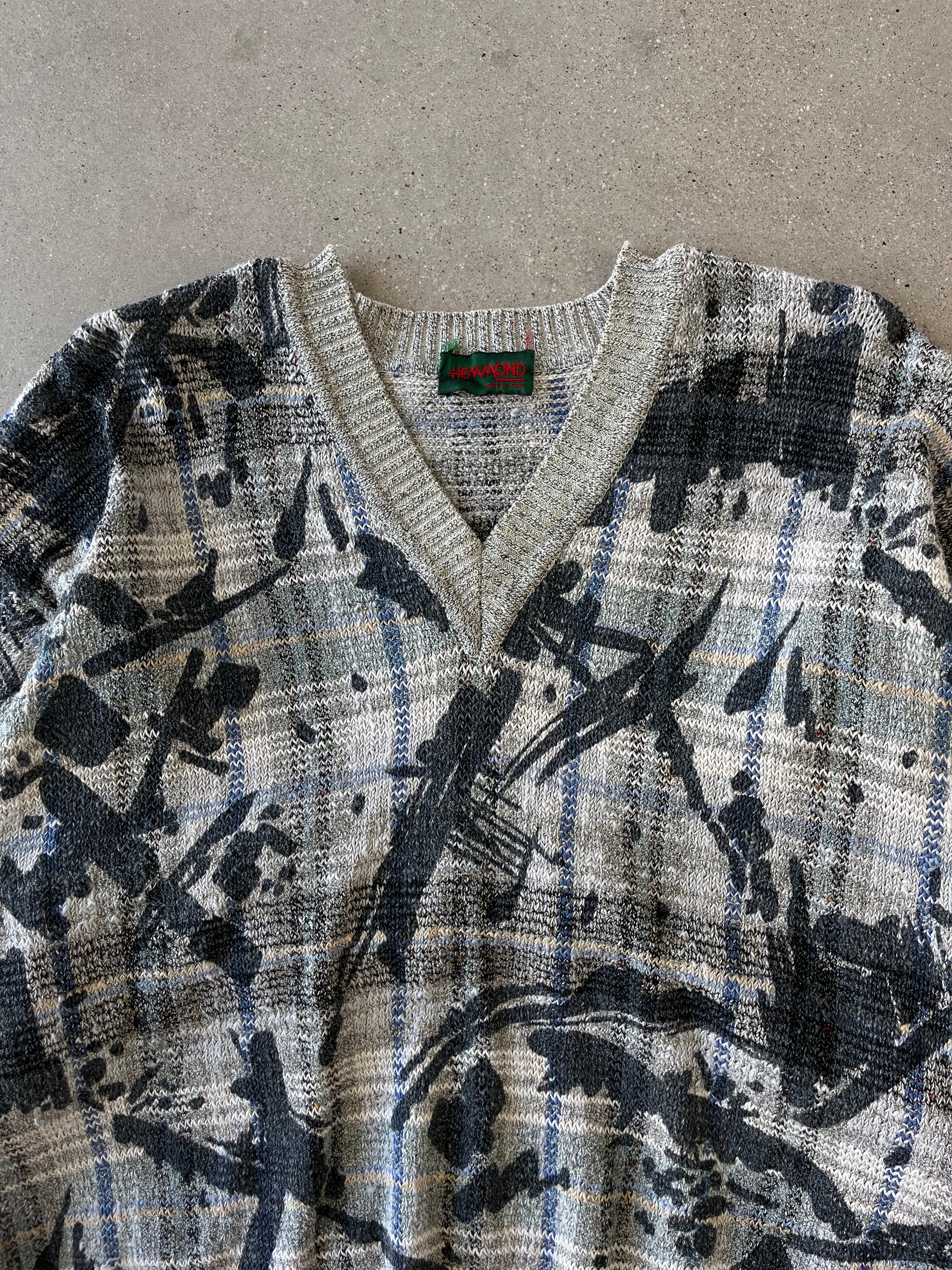 Vintage Hemmond Abstract V-Neck Sweater - L
