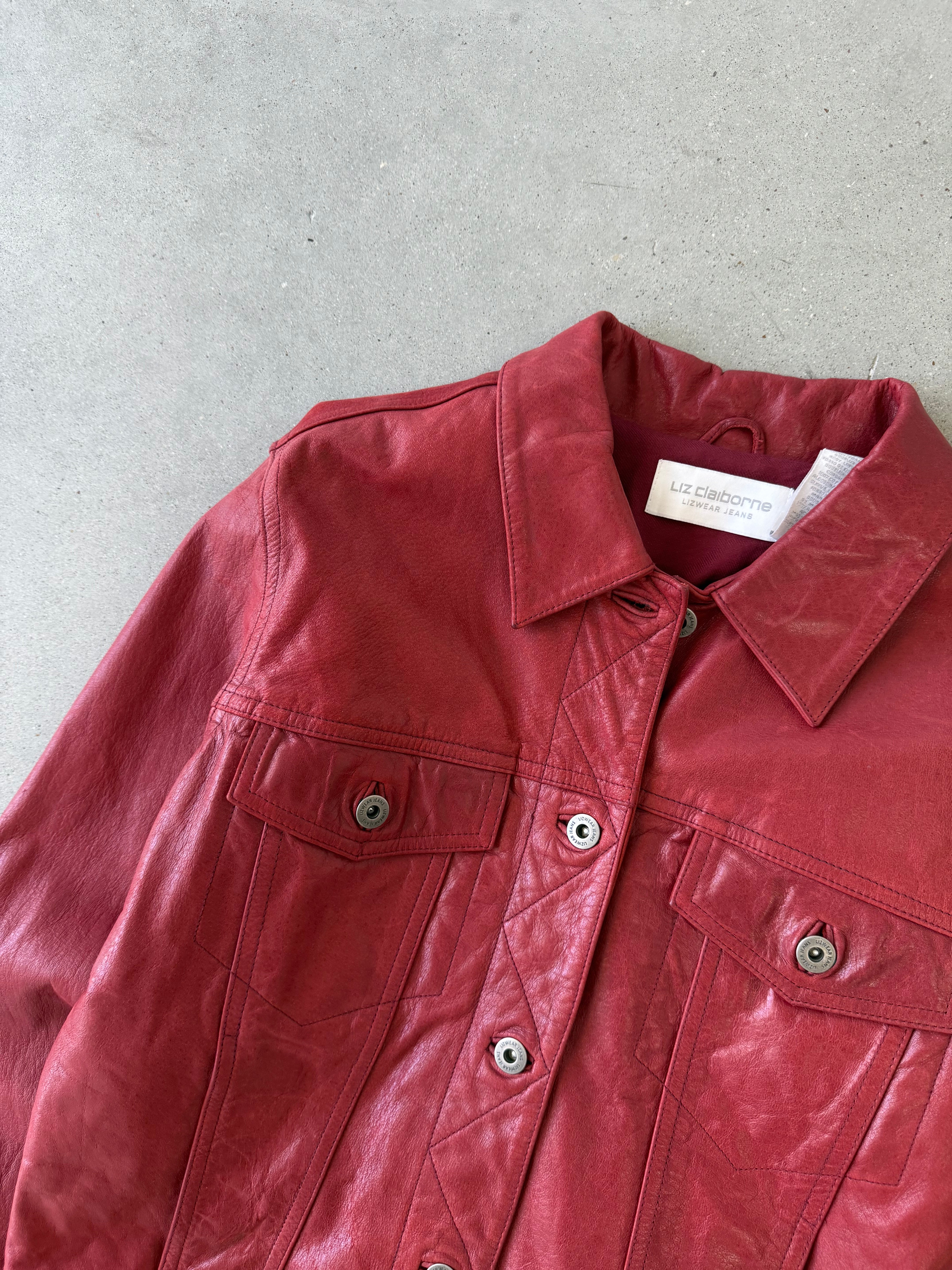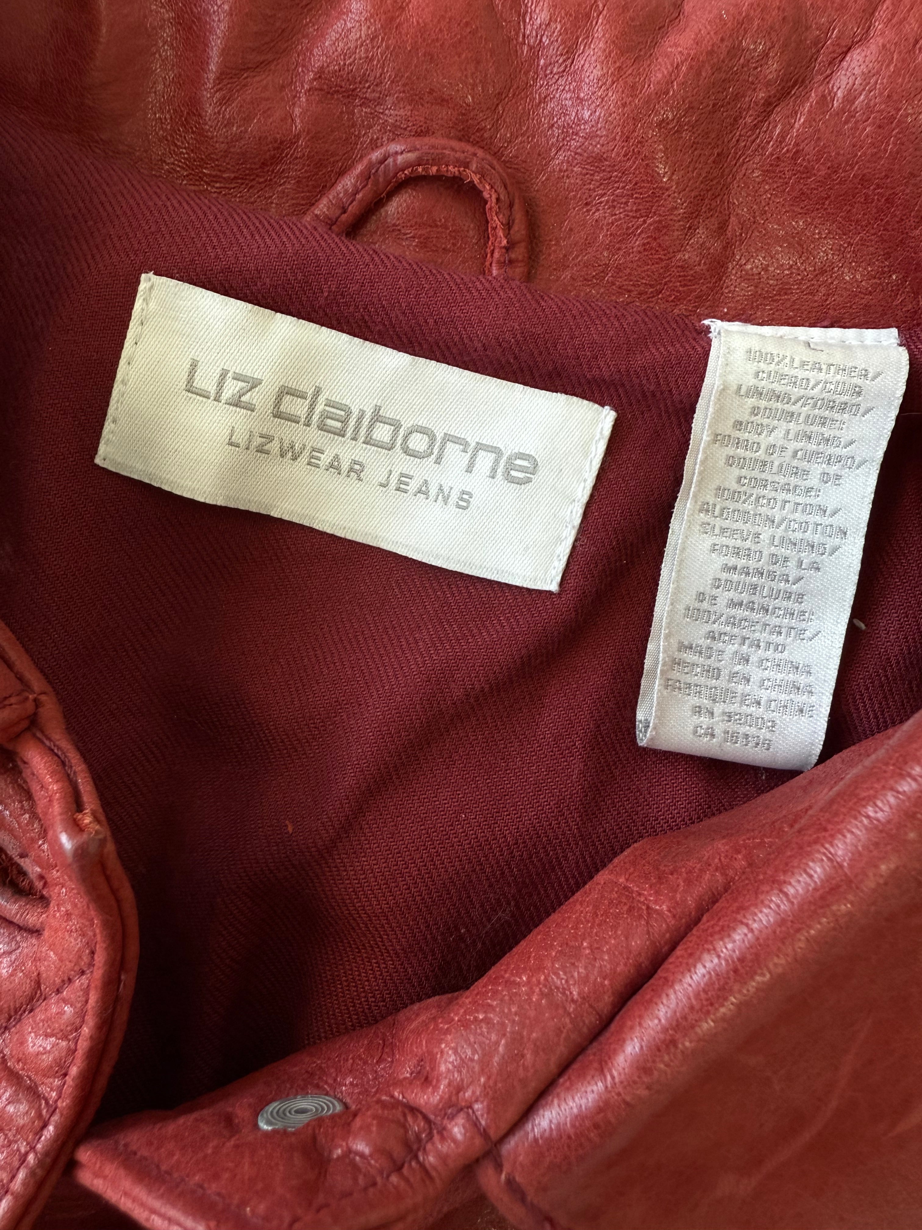 Vintage Women's Liz Claiborne Red Leather Jacket - L